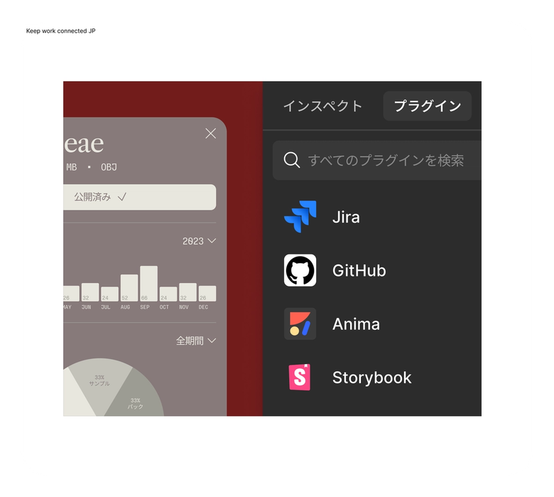人気の開発ツールのワークフロープラグインを使えば、デザインライブラリ、コードベース、プロジェクト管理ツールの間を行き来する必要がなくなります。