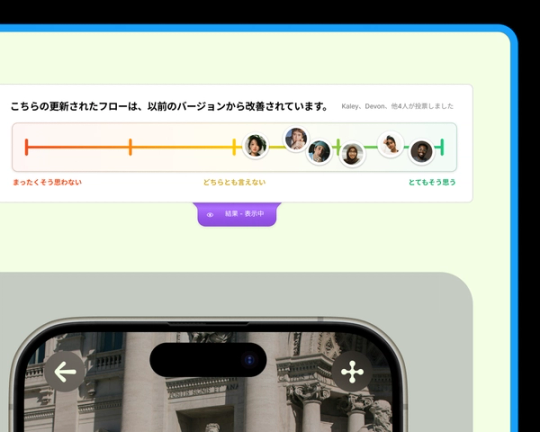 ライブ投票、一致度スケール、投票を通じて双方向の会話を促し、意見の一致を図ることができます。さらに、ライブプロトタイプを埋め込むことで、視聴者がデザインを実際に体験できるようにすることもできます。