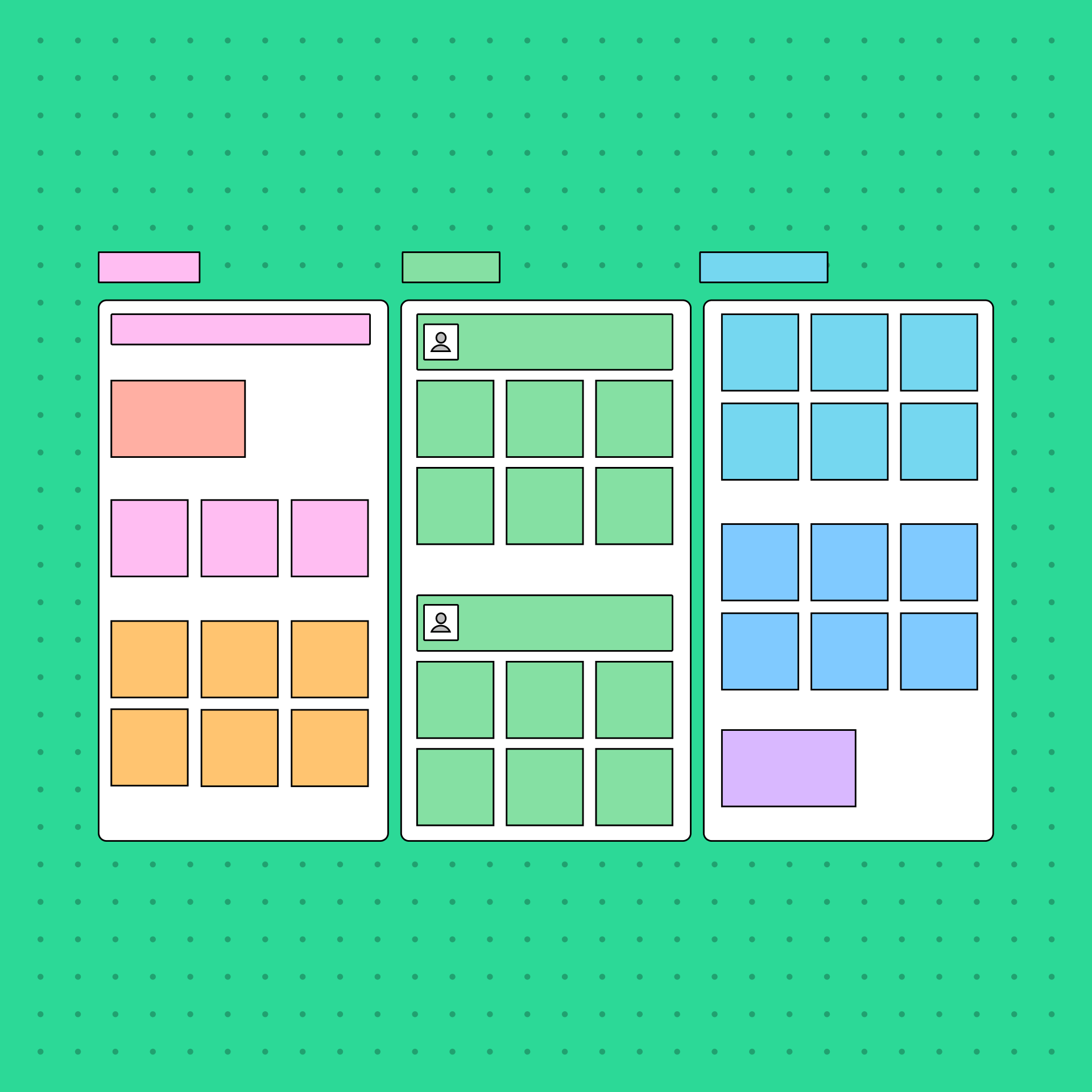 Keep your design ideas, UX research, wireframes and QA notes all in one place with FigJam templates that work alongside your Figma tiles.