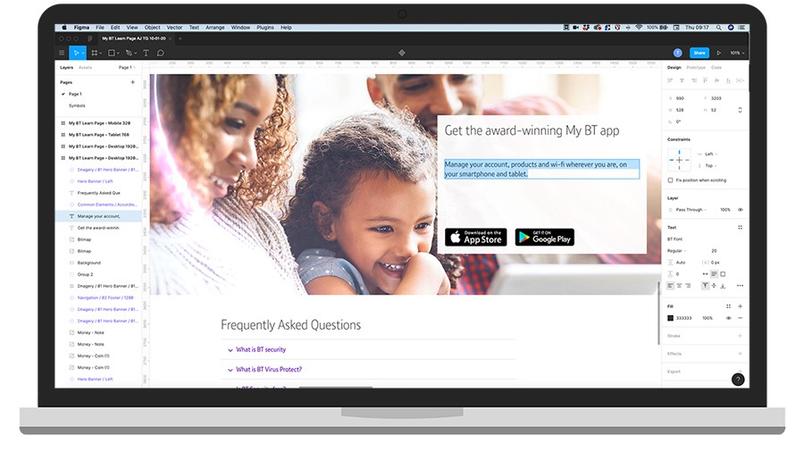 After the pilot, BT rolled out Figma across all product squads. Today, designers, product owners, content designers, and engineers all jump into Figma to design together. Beyond the core team, Figma has brought more visibility into design among BT’s executive stakeholders. Via a simple link, stakeholders can now view and comment on in-progress design work from any device.