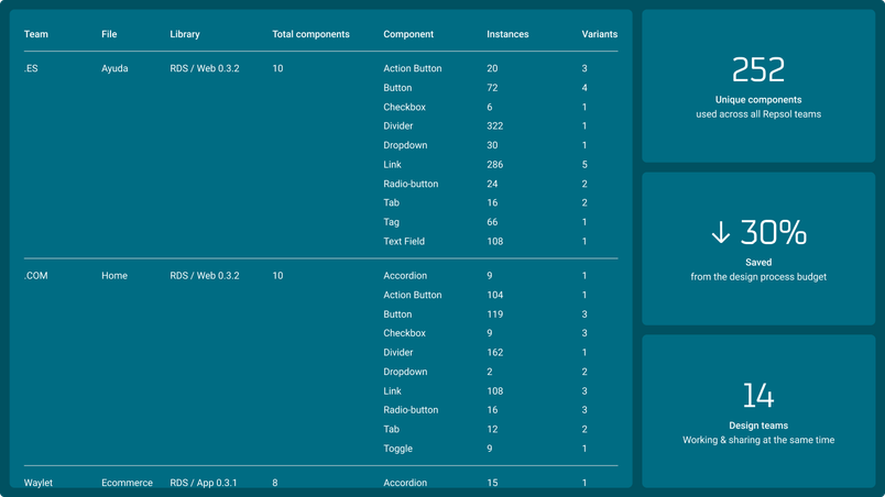 Mendesaltaren helped develop two plugins, Figmetrics and MSVM by Mendesaltaren, to help Repsol understand the ROI of their design work. Figmetrics offers insight into how components are used in each Figma file, while the MSVM plugin allows the teams to stay connected and aligned with a single source of truth for different teams: design, product management, business and technology. The new design system and processes have enabled the team to iterate faster and reduce work required for product implementation by 30%. With these updates, they’ve saved time and resources, all while simplifying the decision-making process. "Thanks to the new design system and plugins implemented to track performance and versions, Repsol can now easily track how much money, time, and effort they’re saving ” says Jorge Lana, partner & CSO at Mendesaltaren.