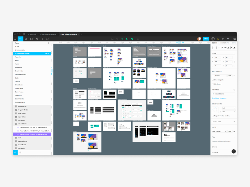 Equipped with the right tool all teams and external agencies were finally speaking the same language. But given the extensive nature of the website project, the team decided they’d have to build everything from scratch. In an effort to save time, Caporale saw the opportunity to prioritize the design system. As Caporale puts it, “building out the Design System came naturally thanks to the quality of features in Figma.” Thus, the UAL design system was born.