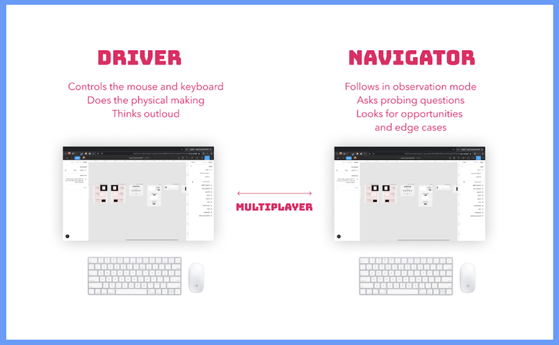 First off, let’s start with defining what design pairing is: two people synchronously solving a design problem together.